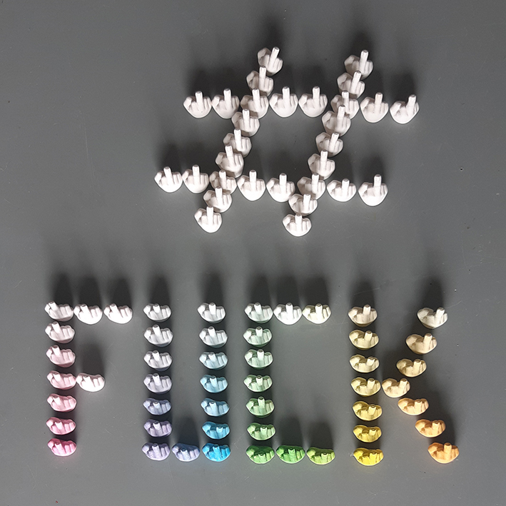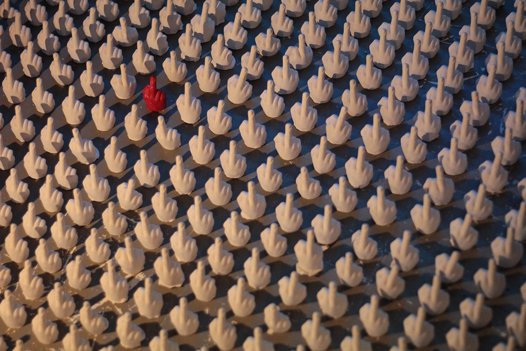 Sous une allure faite de transparence, de brillance et de reflets subtiles, ce doigt dit dans un humour très contemporain :
