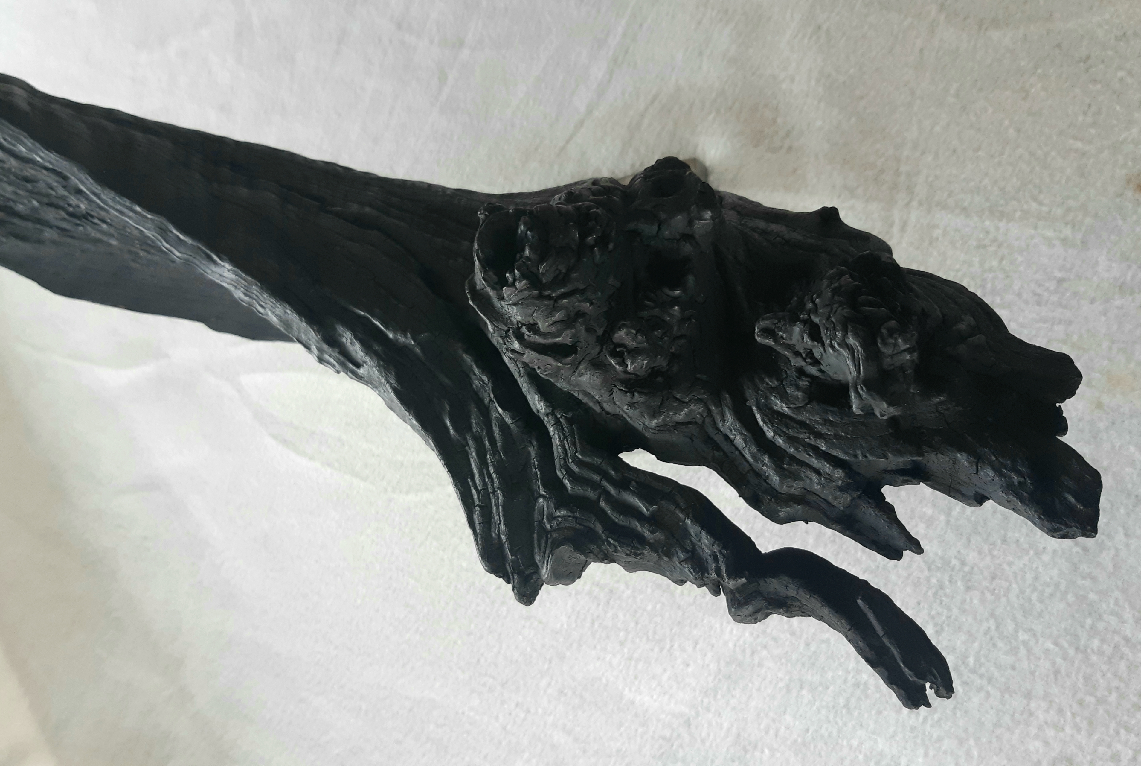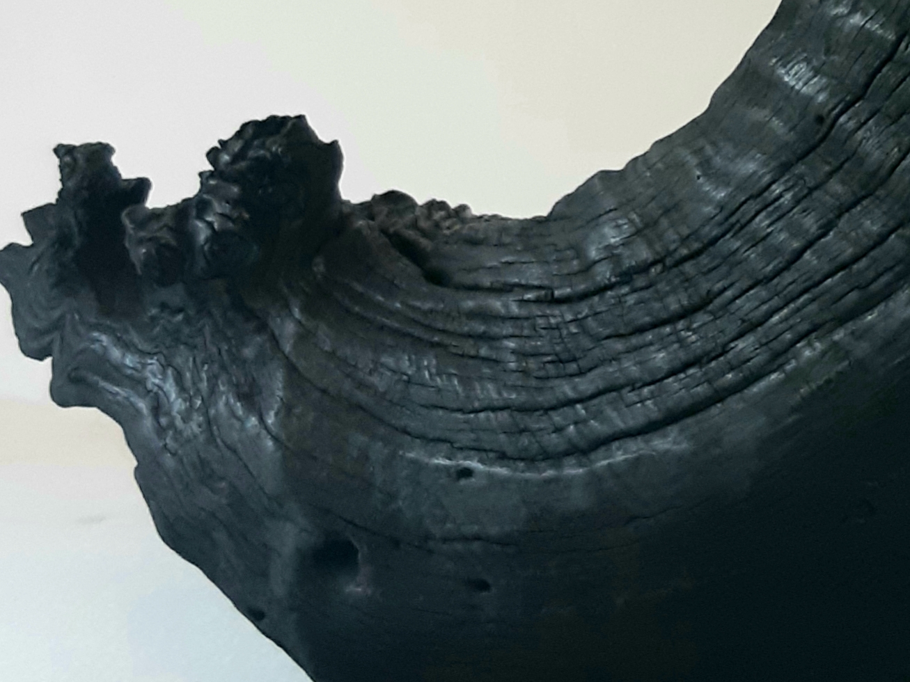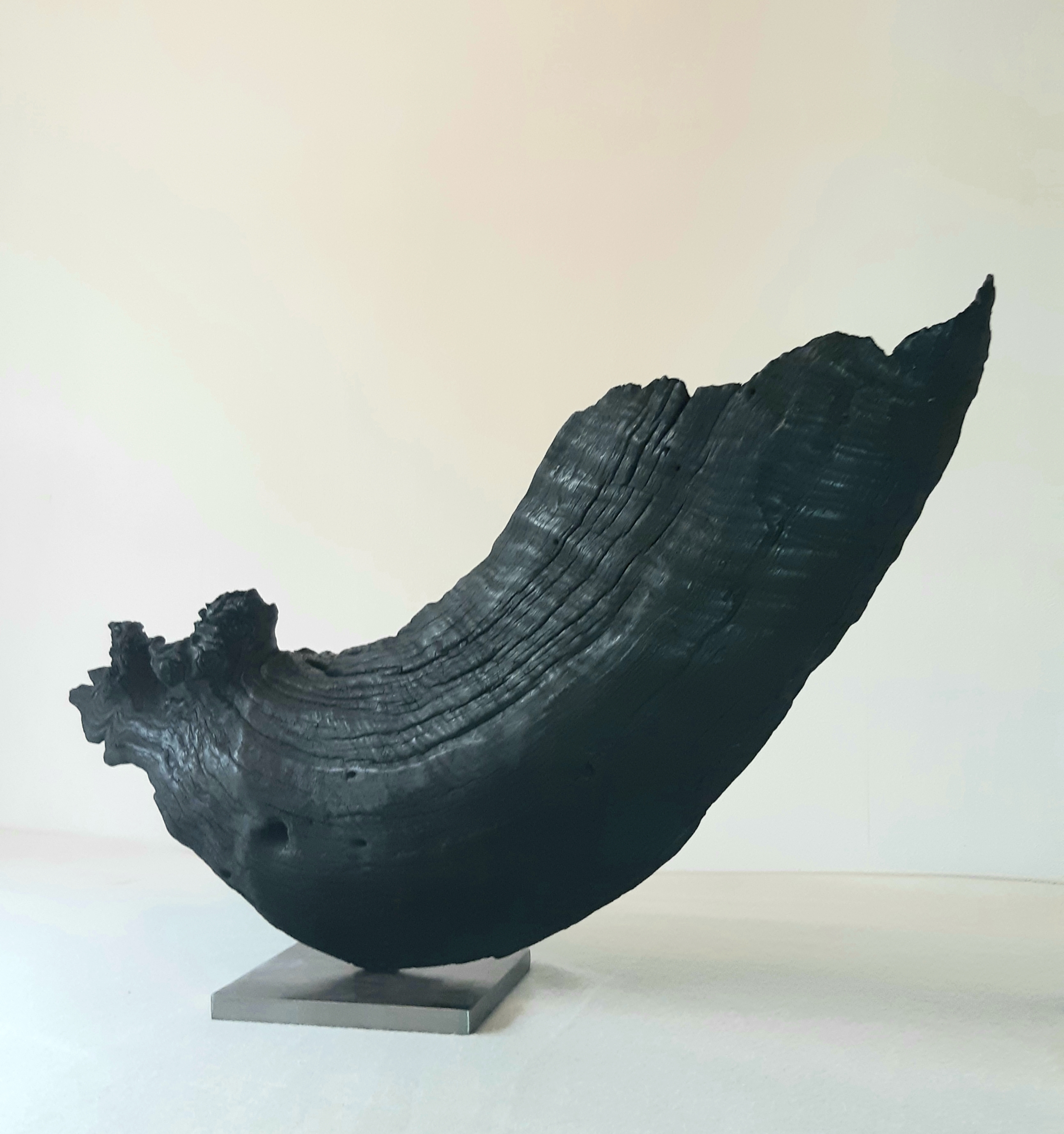 « Avec ce carbone et ce relief à fleur de peau, c’est l’arbre qui décide de ce qu’il va me donner en révélant sa propre sculpture. C’est la magnificence : ce moment où le bois m’offre une nouvelle peau, où il mue m’apportant sa dernière beauté. » George-K